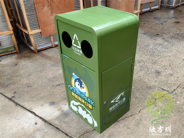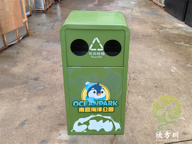 結(jié)構(gòu)優(yōu)化:桶體線條流暢,頂部投放口開闊,內(nèi)桶套袋更換便捷,底部穩(wěn)固設(shè)計兼顧安全與抗風。  定制垃圾桶一經(jīng)投放,效果立竿見影。游客中心反饋顯示,新穎別致的垃圾桶常成為游客駐足拍照的“小景點”,尤其受到兒童喜愛。公園管理人員更對其易清潔性贊不絕口:“濕布一擦即凈,頑固污漬也能輕松去除,省時省力。”更關(guān)鍵的是,分類標識的清晰展現(xiàn)有效引導了游客行為,可回收物分揀準確率明顯提升。在耐用性方面,經(jīng)歷長期高強度使用和不同季節(jié)氣候考驗,桶體結(jié)構(gòu)依然穩(wěn)固,UV打印圖案色彩鮮艷如初,維護成本顯著低于預期。  此次南昌海洋公園的定制實踐深刻證明:公共設(shè)施絕非功能孤島。通過304不銹鋼與UV平板打印技術(shù)的創(chuàng)新融合,垃圾桶成功進化為兼具海洋級耐用性、藝術(shù)感染力與高效功能性的“城市家具”。它無聲訴說著海洋故事,引導著環(huán)保行為,更以經(jīng)久不衰的質(zhì)感與色彩,持續(xù)提升景區(qū)品質(zhì)體驗。