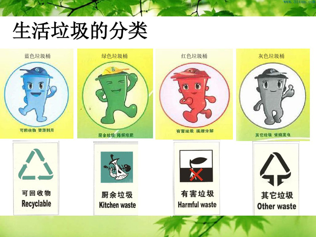 國人每人每年平均產(chǎn)生垃圾300公斤,許多城市都面臨垃圾圍城的局面;生活垃圾被認為是最具開發(fā)潛力的、永不枯竭的城市礦藏,是放錯地方的資源;垃圾分類后被送到工廠而不是填埋場,既可以減少耕地,降低垃圾處理成本,又避免了填埋或焚燒所產(chǎn)生的環(huán)境污染,還可以變廢為寶;垃圾分類收集是垃圾資源化利用的前提和基礎,是發(fā)展循環(huán)經(jīng)濟的突破口,具有社會、經(jīng)濟、生態(tài)三方面的效益。